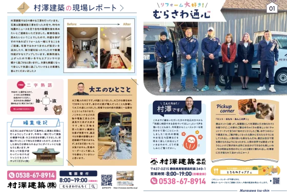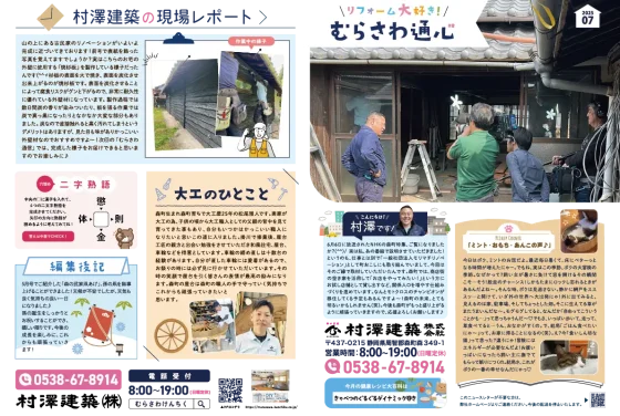 NEWS & BLOG category すべて NEWS&BLOGむらさわ通心 2025.07.01 むらさわ通心7月号 2025.05.01 むらさわ通心5月号 2025.03.01 むらさわ通心3月号 2025.01.01 むらさわ通心1月号 2025.06.16 掛川フェア 2025.06.05 工場見学・展示会 2025.06.04 墨出し 2025.06.03 フロアタイル 2025.06.02 屋根 2025.05.28 心棒 2025.05.19 床リフォーム 2025.05.16 屋根工事 12345...102030...»最後 »